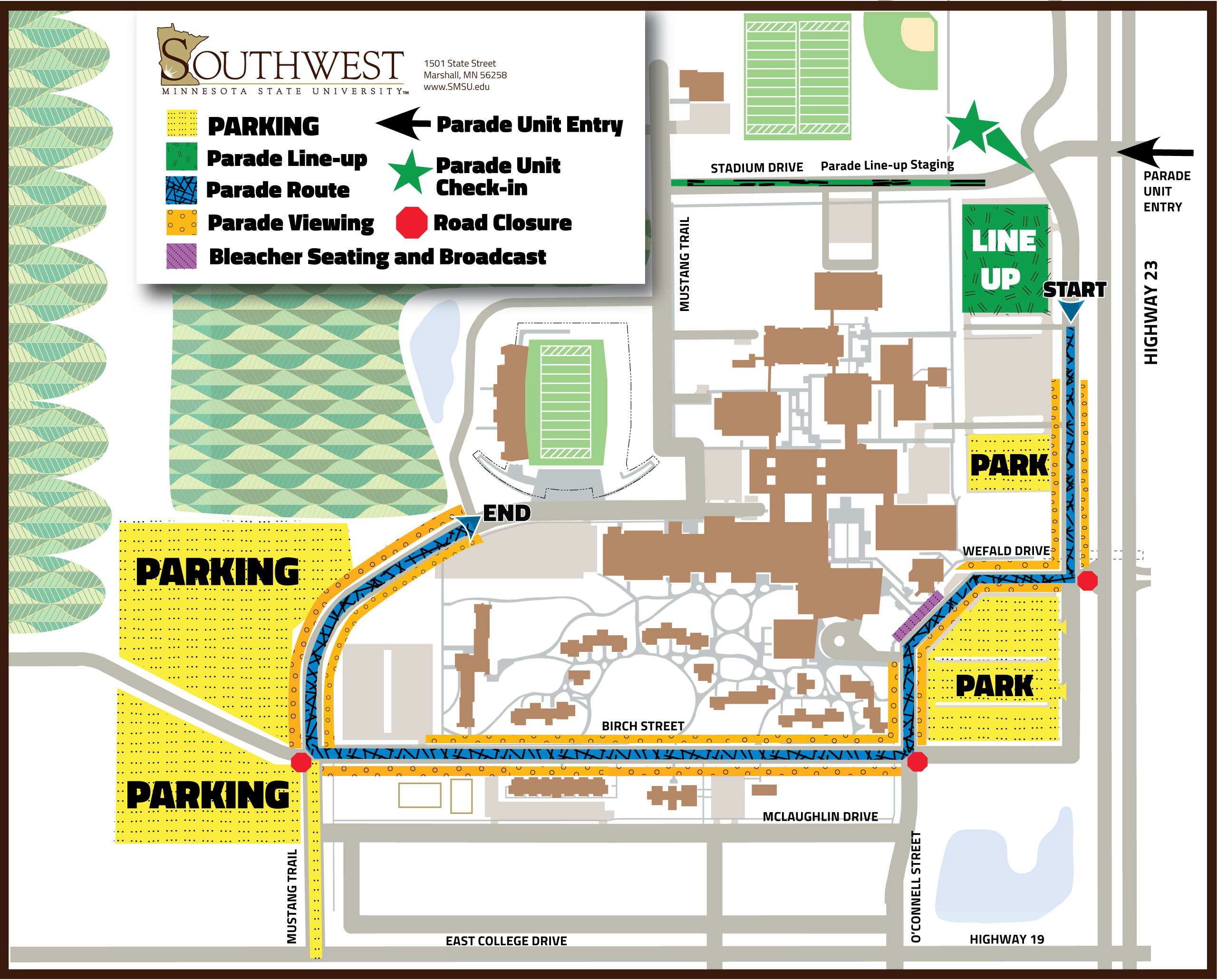 We are excited to start a new tradition for the SMSU Homecoming parade by holding it on campus. This move not only brings the festivities closer to the heart of our campus community but also allows for a more immersive experience for all attendees. Alumni will enjoy VIP seating near Founders Hall, offering a prime view of the parade while reconnecting with old friends and making new memories.
